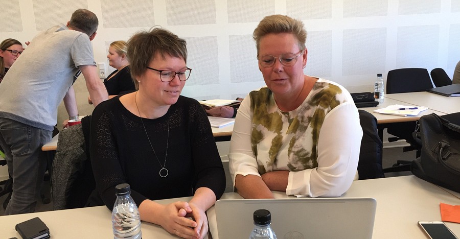 De to social- og sundhedsassistenter Lisbet Holt Jespersen og Henriette Kviesgaard er to blandt et helt hold, der er i gang med at tage efteruddannelsen i sundhedspraksis, hvor man som studerende blandt andet får praktisk og teoretisk viden om dokumentation, professionel praksis, kommunikation, socialpædagogik og psykiatri med fokus på social- og sundhedssektoren.